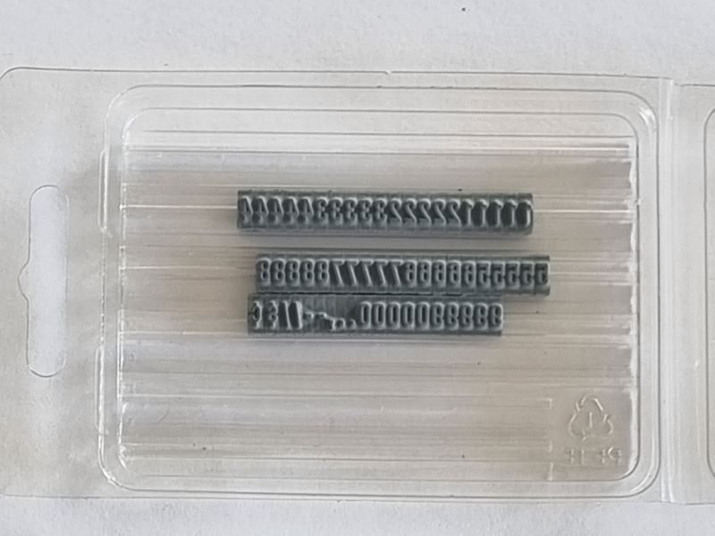 The FU71 Ribtype 3.97mm Number Set is a modular rubber type set used for creating changeable stamps, typically for marking or coding purposes. The Ribtype base can be purchased separately, and used on either a manual rubber stamp handle, or a Trodat Professional. For further information on ribtype please ask.