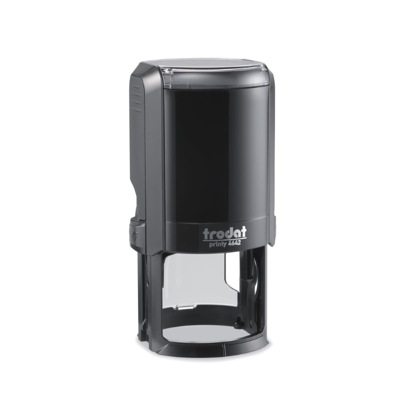 The Trodat Printy 4642 is a Self-inking stamp. Ideal for simple custom logos and round seals. It offers clear and consistent impressions. The stamp is refillable, providing thousands of impressions before needing a replacement ink pad.