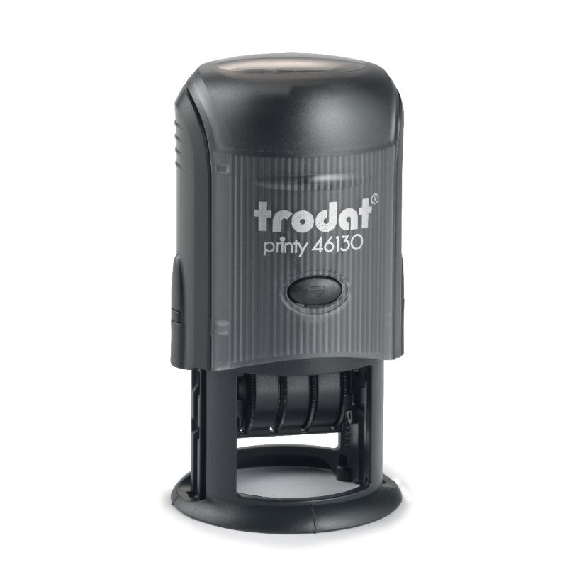 The Trodat Printy 46130 is a Self-inking stamp. Ideal for simple custom text or round seals featuring the Date in the centre. It offers clear and consistent impressions. The stamp is refillable, providing thousands of impressions before needing a replacement ink pad.
