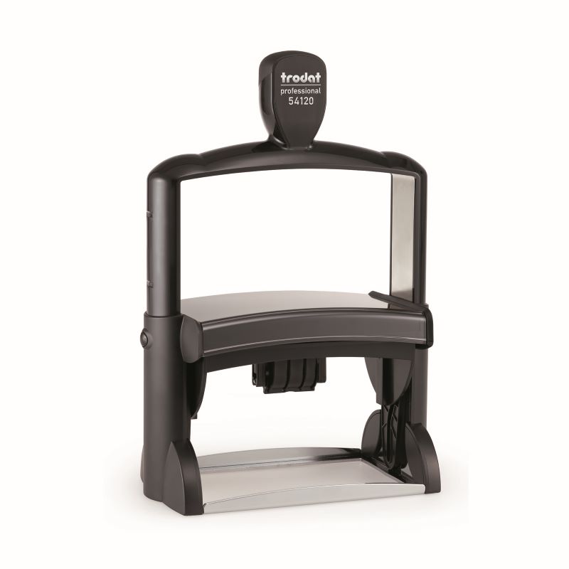 The Trodat 54120 is a self-inking date stamp designed for frequent use in office or industrial settings. It features a durable metal frame for long-lasting performance. The date bands are easy to rotate by hand, and it uses a built-in ink pad that’s replaceable and mess-free. It is ideal for stamping documents with dates for filing, processing, or record-keeping purposes.